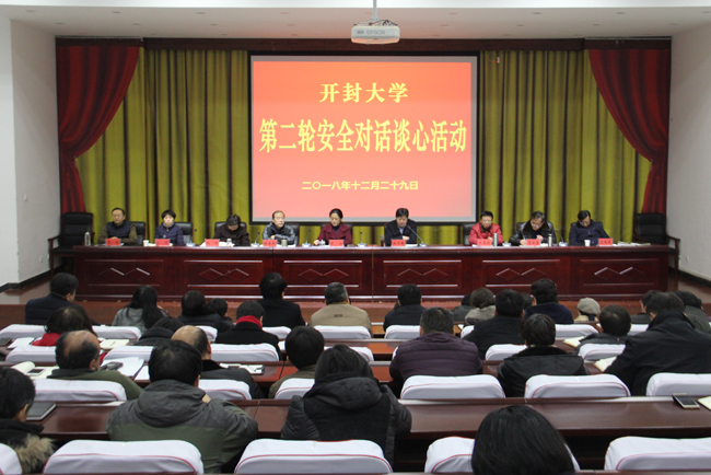 12月29日上午,我校在行政楼一楼会议厅开展第二轮安全对话谈心活动。全校副科级以上干部及教授、博士等高层次人才参加了此次活动。