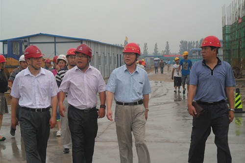 2013年6月3日上午,校长拜五四视察东京大道校区三期BT项目建设工地,副校长、东京大道校区建设指挥部指挥长耿广利,北京城建副总张胜利,北京城建项目经理朱立宣以及东京大道校区建设指挥部、东京大道校区三期BT项目项目部有关同志的陪同视察。