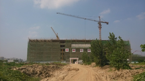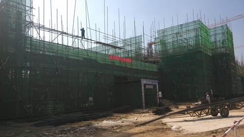 (五)BT项目进展情况:8-11#宿舍楼四层浇筑砼、主教学楼二层搭架子绑扎钢筋(见下图)
