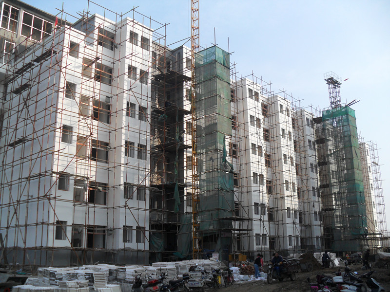 由孙李唐村承建的4#宿舍楼地板砖已基本完工,正在进行第二遍涂抹腻子和门窗安装(见下图)。