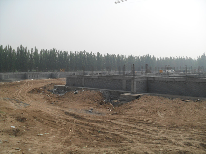 由孙李唐村承建的学生公寓3号、4号楼基础砌体已完成。