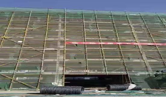 2、新建学生公寓5#楼工程:主体七层结构施工已完成,斜屋面支撑架已搭设完毕,斜屋面模板支设50%,塔吊四层东部已设置扶墙件。