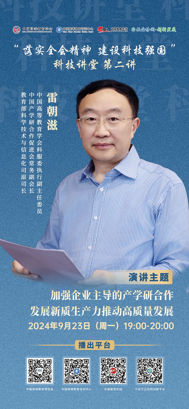 讲座将深入学习贯彻党的二十届三中全会、全国科技大会、全国教育大会精神,就下一阶段高等学校科技创新如何高质量发展作出系统性思考。
