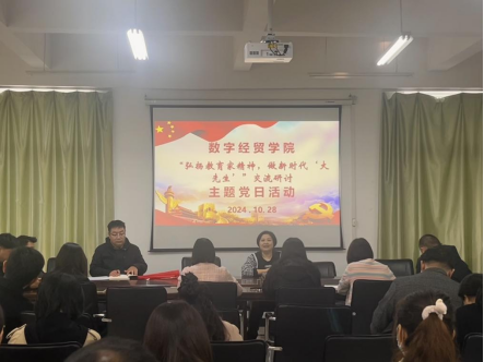为更好践行教育家精神、加强师德师风建设,2024年10月28日下午,bat365在线官方网站数字经贸学院党总支开展“弘扬教育家精神、做新时代‘大先生’”为主题的党日活动,活动由教工党支部一支部书记崔芸同志主持。