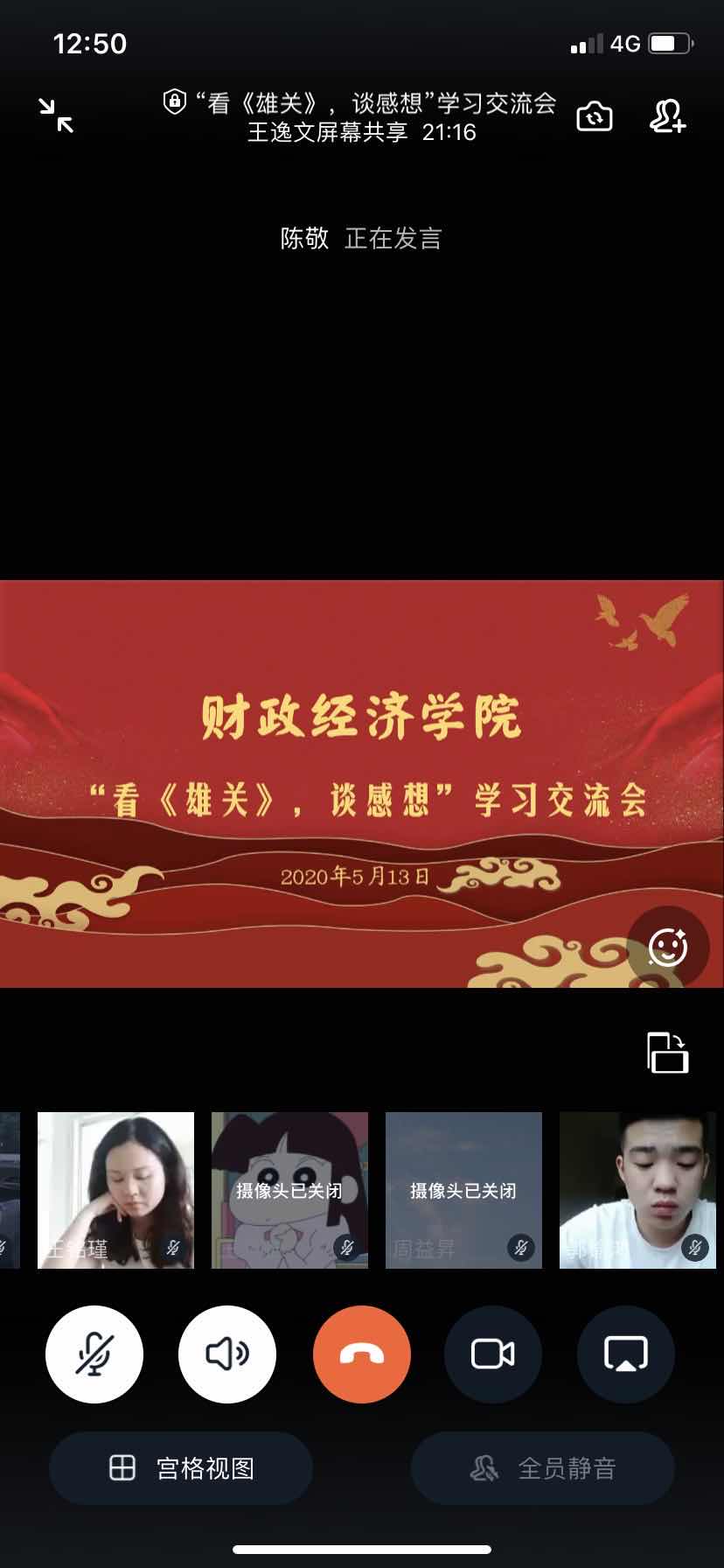 为深入学习宣传贯彻习近平总书记关于统筹推进疫情防控和经济社会发展工作的重要论述,财政经济学院组织全体师生认真收看由省委宣传部、河南广播电视台联合制作的大型电视政论片《雄关》。5月13日中午,学院团总支通过钉钉会议组织召开“看《雄关》,谈感想”学习交流会,院团总支书记薛成,2019级辅导员潘博博、王铭瑾以及团学联全体成员参与活动。