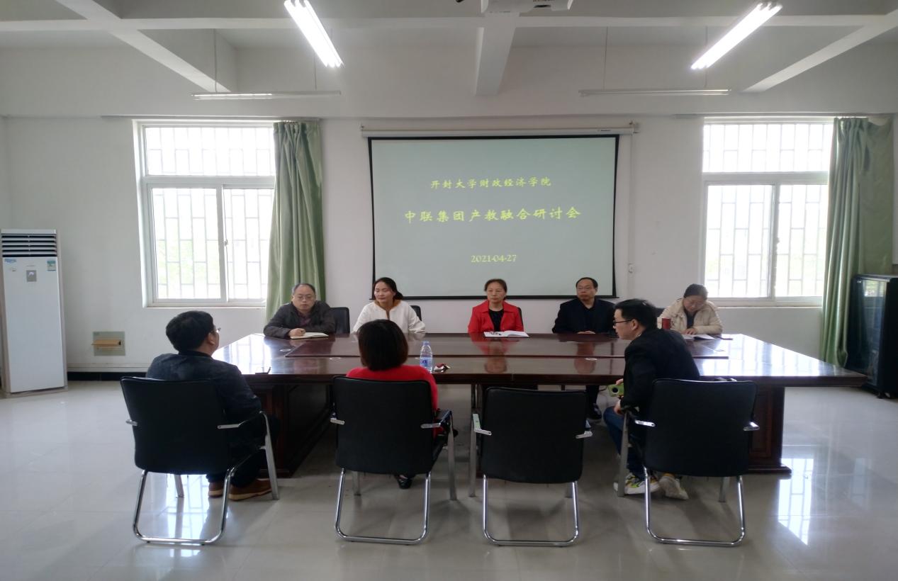 2021年4月27日上午,财政经济学院在10号教学楼211召开大数据与会计专业产教融合会议。参加此次交流会的有中联集团教育科技有限公司河南分公司总经理龚义、河南叮咚企业管理咨询有限公司总经理张姝曼、云账房网络科技有限公司总经理马红亮、学院院长李国莉、书记赵志成、副院长杨耀旭、吴娟、会计教研室主任高珊。