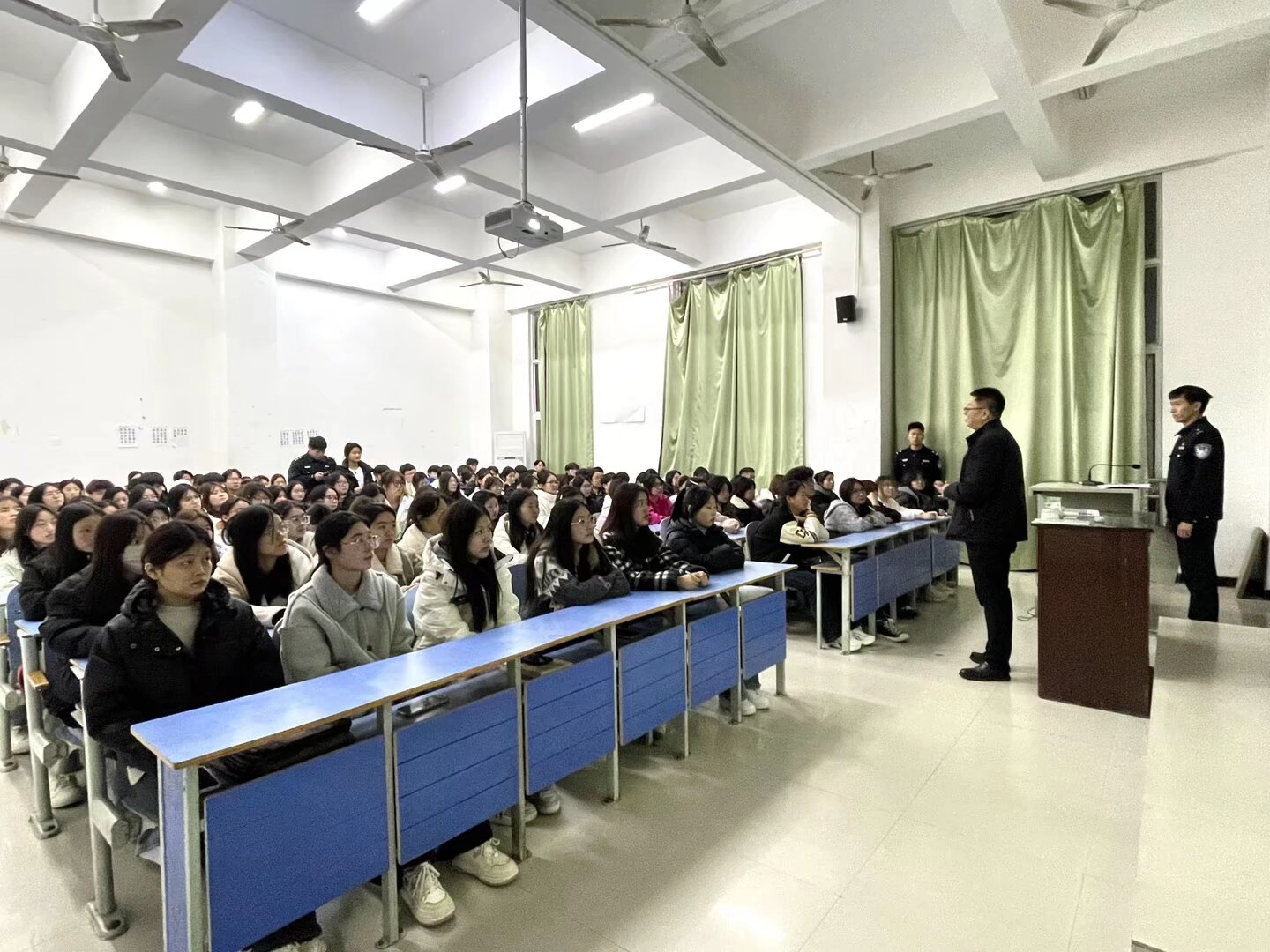 为进一步提升在校学生的防范电信网络诈骗意识和能力,有效遏制电信诈骗案件发生,切实保障学生的财产安全与人身安全,11月25日下午,我院在15号楼401教室举行防范电信诈骗讲座。本次讲座由北郊乡派出所民警朱子俊主讲,100余名学生到场聆听。