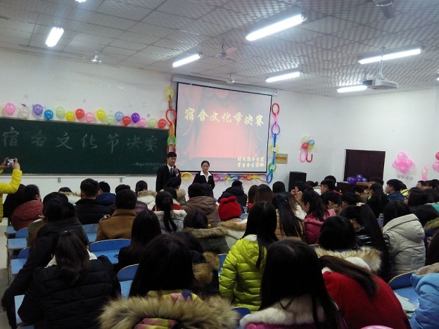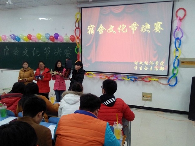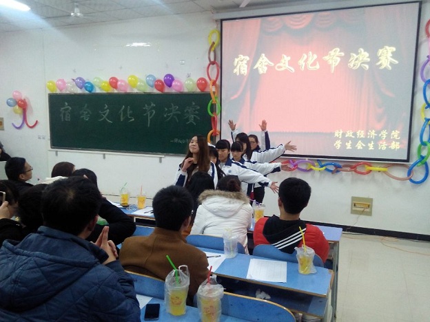 2014年12月5日晚,我院举行财经风采展现月系列活动——宿舍文化节决赛。教室中一派热闹的氛围,但这依然掩饰不住同学们心里的激动。首先进行时的是变废为宝的节目,同学们展示了自己寝室同学一起集思广益做出来的作品,第二个环节是寝室才艺展示,同学们各显神通,有的整个寝室一起动员上台翩然起舞,有的在温馨又搞笑的PPT映衬下引吭高歌,不得不让人惊呼:“我们学院真是卧虎藏龙之地啊!”观众与主持的互动更是将现场推向了高潮。