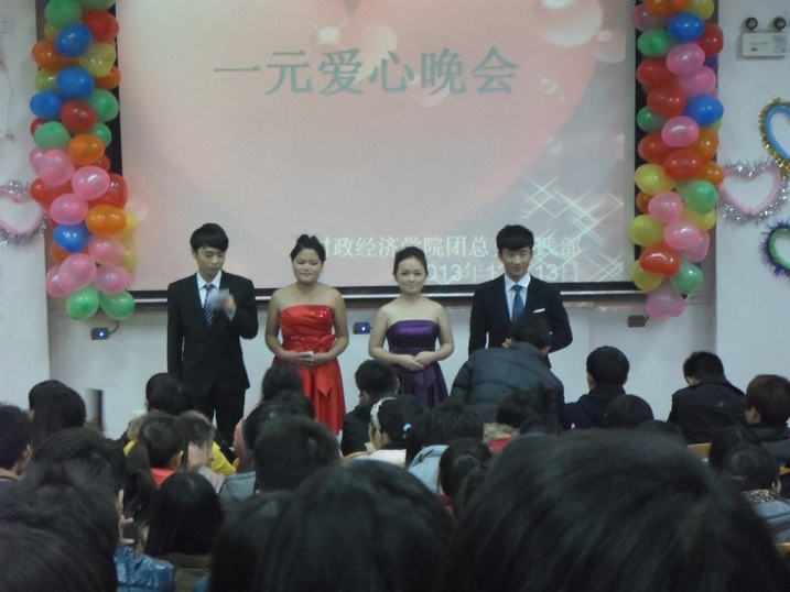 12月13 日由四校联盟联办的一元爱心晚会在bat365在线官方网站东京大道校区17号楼116教室举行,院团总支书记李灿老师、各院主席部长以及外校各爱心志愿者参加了晚会。