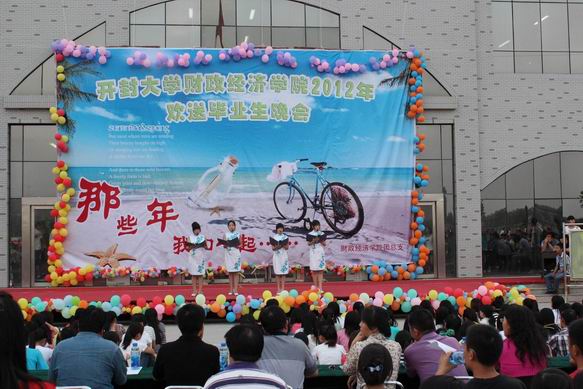 2012年6月11日晚7点,在新校区财政经济学院举办了以“那些年,我们一起……”为主题的欢送毕业生晚会,学院党政领导和所有任课老师们出席观看了晚会,为毕业生同学们送上真诚的祝福。