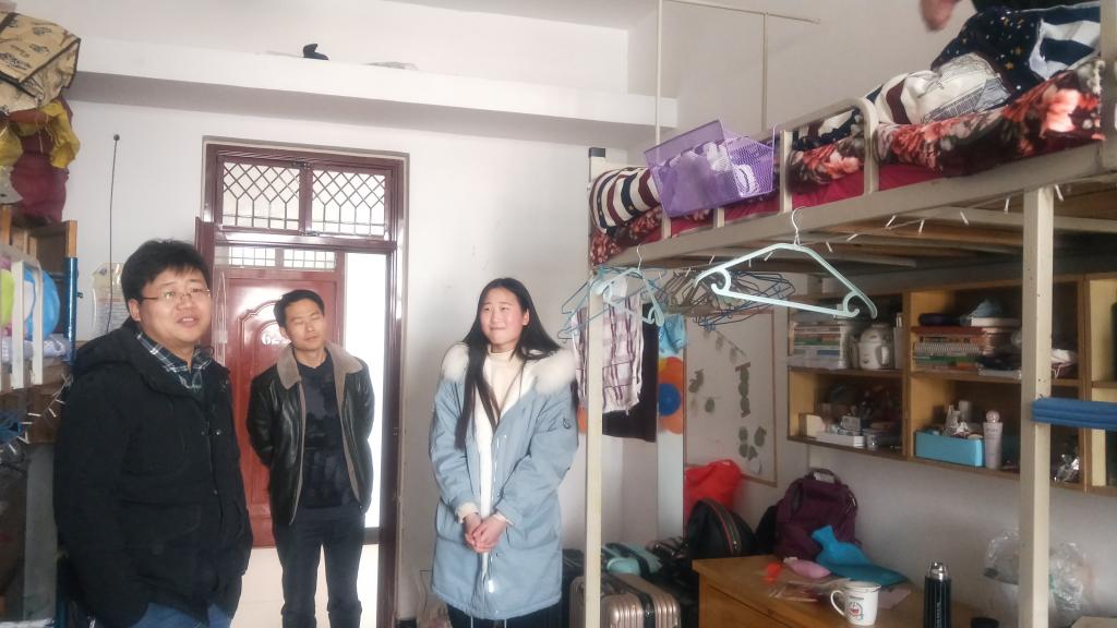 在走访过程中,领导和老师们对宿舍卫生、用电安全以及防火安全等方面进行排查,对于一些宿舍存在的安全隐患现场提出并予以整改。与此同时,党总支书记赵志成与副书记杨强与学生进行了亲切交谈,了解同学们的寒假生活,祝愿同学们在新的一年里,学业进步,身体健康;叮嘱学生及时进行心态调整,尽快从假期休息的状态中调整出来;鼓励同学们新学期树立明确的奋斗目标,以饱满的热情投入到新学期的学习和生活中,做“懂礼仪、会劳动、有责任、精技艺”的开大学子,为学校创建优质学校贡献自己的力量。