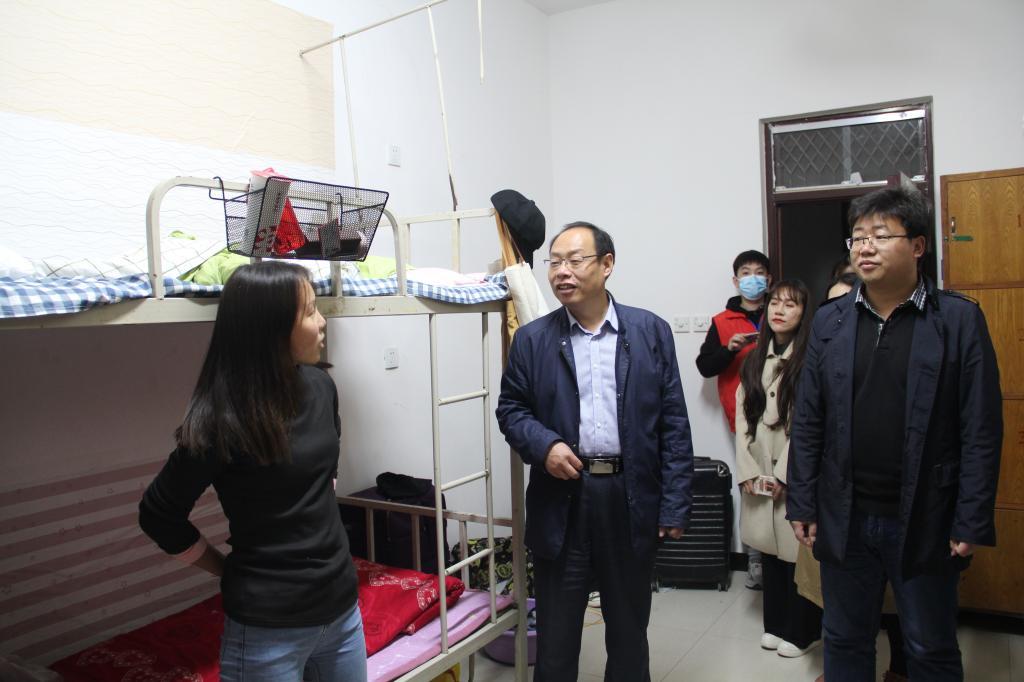 赵书记、杨书记就疫情防控、安全教育、角色转变、学习生活、家庭情况、职业规划等方面与新生进行了深入交流,详细询问我院新生到校情况,亲切地与学生交流疫情期间进入新环境的感受。同时,赵书记叮嘱同学们目前仍处于疫情防控常态化阶段,同学们要提高防控意识,严格执行学校的防控管理规定和相关安排部署,要时刻注意宿舍卫生安全问题,注意宿舍通风透气,时刻保持好宿舍地面卫生,使宿舍干净整洁。走访期间,领导教师们多次提醒同学们,要时刻注意人身、财产安全,提高警惕,学会随机应变,注意防盗防骗。