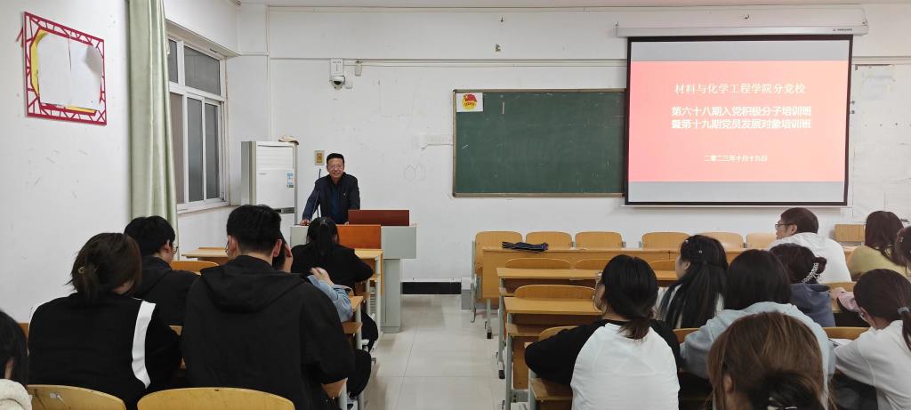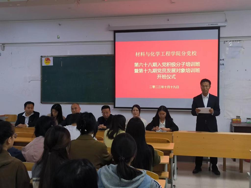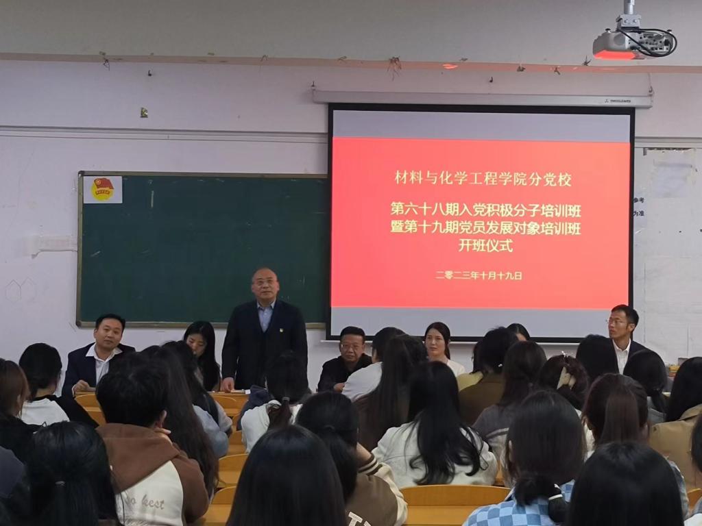 根据校党委总体工作安排、党校培训工作总体部署和《中国共产党党员教育管理工作条例》《中国共产党发展党员工作细则》的要求,bat365在线官方网站材料与化学工程学院分党校于10月20日举办了第68期入党积极分子暨第19期发展对象培训班开班仪式。校党委委员、副校长万是明、学院党总支书记侯彦喜、学院党总支委员、副院长王丽、学生党支部全体委员及第68期入党积极分子、第19期发展对象参加本次仪式。