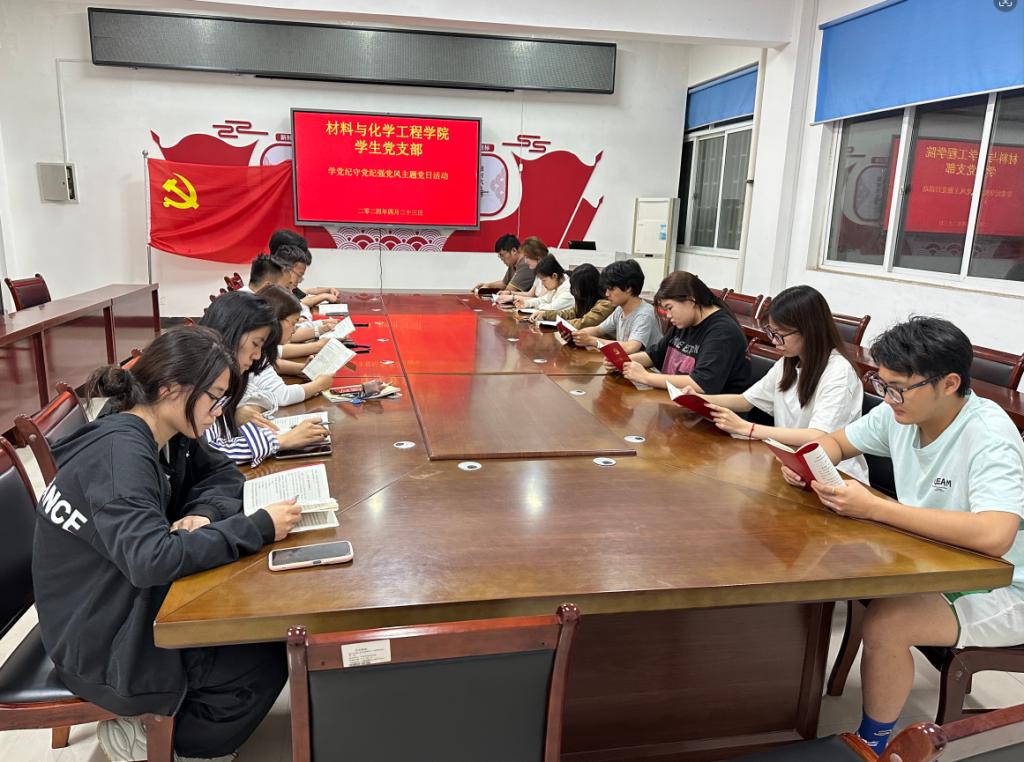 为提升党员的政治素养,强化党的纪律观念,筑牢纪律防线,我院学生支部于4月23日晚上7点在7号楼201会议室开展“学党纪,强作风”5+N主题党日活动,会议由学生党支部书记杨磊主持。
