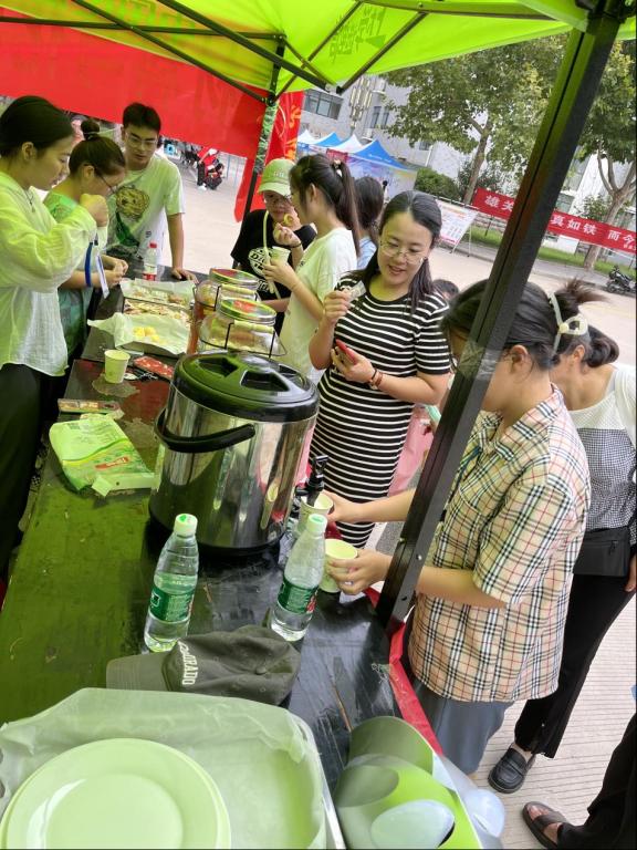 院部迎新区域设有院部概况、师资建设、专业介绍、特色签名等展板,并且配有休息区,实训产品展示区等特色服务。特别是实训展示区,配备专业老师亲自带领院部在校生制备的牛魔王奶茶、茉莉奶绿、缤纷水果茶、鸭屎香柠檬茶等饮品,泡芙、月饼、坚果曲奇、奶酥提子等点心,并配有解说员,真正做到茶香满园,情入点心。现场人声鼎沸、络绎不绝,新生及家长频频停足品尝,赞不绝口。