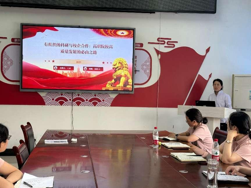 4月24日下午,材料与化学工程学院教工一支部书记王丽围绕“有组织的科研与校企合作:高职院校高质量发展的必由之路”这一主题对一支部全体党员讲授党课。