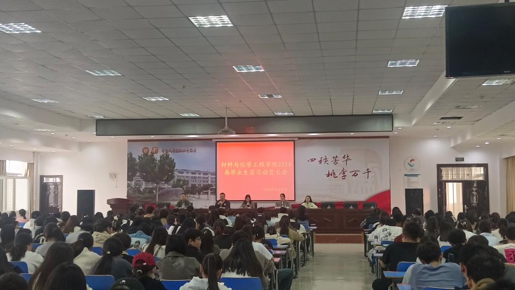 10月27日下午四点,材料与化学工程学院在土木六楼报告厅进行2024届毕业生顶岗实习动员大会。大会由副院长王明瑞主持,院长韩艳霞、副院长王丽、2024届辅导员及全体毕业生参加了会议。