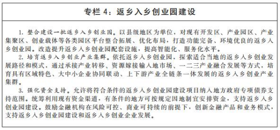四、强化创业带动作用,放大就业倍增效应 深入实施创新驱动发展战略,营造有利于创新创业创造的良好发展环境,持续推进双创,更大激发市场活力和社会创造力,促进创业带动就业。 (七)不断优化创业环境。 深化创业领域“放管服”改革。全面实行《优化营商环境条例》和政府权责清单制度,分类推进行政审批制度改革,打造市场化法治化国际化营商环境。实施全国统一的市场准入负面清单制度,健全清单动态调整机制,定期评估、排查、清理各类显性和隐性壁垒,最大限度解除对创业的束缚。提升企业开办标准化规范化便利化水平,建立便利、高效、有序的市场主体退出制度。实行以公平为原则的产权保护制度。 加强创业政策支持。加大对初创实体的支持力度,进一步降低创业成本,提升初创企业持续发展能力。落实创业担保贷款及贴息政策,提高贷款便利度和政策获得感。拓展创业企业直接融资渠道,健全投资生态链,更好发挥创业投资引导基金和私募股权基金作用,加大初创期、种子期投入。提升创业板服务成长型创业企业功能,支持符合条件的企业发行企业债券。 实现创业资源开放共享。强化大企业在市场拓展、产业链协调、带动中小企业创业方面的作用,实施大中小企业融通创新专项行动,鼓励大企业向中小企业开放资源、场景、应用、需求,打造基于产业链供应链的创新创业生态。推动国家科研平台、科技报告、科研数据、科研仪器设施、高校实验室进一步向企业、社会组织和个人开放,创造更多创业机会。促进国家级新区、国家自主创新示范区开放企业(项目)资源,建立项目对接机制,吸纳人才创业。 (八)鼓励引导各类群体投身创业。 激发劳动者创业的积极性主动性。实施农村创业创新带头人培育行动,壮大新一代乡村企业家队伍。实施大学生创业支持计划、留学人员回国创业启动支持计划。鼓励引导有创业意愿和创业能力的农民工、大学生、退役军人等人员返乡入乡创业。建立科研人员入乡兼职兼薪和离岗创业制度,完善科研人员职务发明成果权益分享机制。激发和保护企业家精神,倡导敬业、精益、专注、宽容失败的创新创业文化。 全方位培养引进用好创业人才。大力发展高校创新创业教育,培育一批创业拔尖人才。面向有创业意愿和培训需求的城乡各类劳动者开展创业培训。实施更加积极更加开放更加有效的人才政策,加大创业人才引进力度,为外籍高层次人才来华创业提供便利。健全以创新能力、质量、实效、贡献为导向的创新创业人才评价体系,加强创新创业激励和保障。 (九)全面升级创业服务。 打造全生态、专业化、多层次的创业服务体系。加快完善创业服务网络。加强服务队伍建设,为创业者提供政策咨询、项目推介、开业指导等服务。推广创业导师制,推行科技特派员制度,支持科技领军企业、高技能人才、专业技术人才等到基层开展创业服务。实施创业带动就业示范行动,组织各类创业大赛和创业推进活动,办好全国双创活动周,开展创业型城市示范创建,营造浓厚的创业氛围。 建设特色化、功能化、高质量的创业平台载体。构建众创空间、孵化器、加速器、产业园相互接续的创业平台支持链条。创新创业孵化载体建设模式,支持大企业与地方政府、高校共建,提高利用率。实施全国创业孵化示范基地改造提升工程,强化服务质量管理,提升孵化服务功能,新认定一批国家级创业孵化示范基地。优化双创示范基地建设布局,充分发挥双创示范基地示范带动作用。鼓励地方开辟退役军人创业专区和退役军人就业创业园地,依托各类产业园区建设一批返乡入乡创业园,加强大学生创业园等孵化载体建设。支持地方进一步加快建设留学人员创业园,持续推动省部共建。