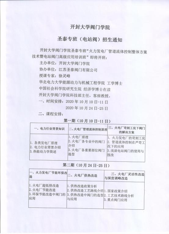 bat365在线官方网站阀门学院圣泰专班(电站阀)招生通知