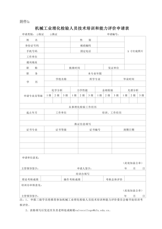 机械工业理化检验人员技术培训和能力评价申请表.docx