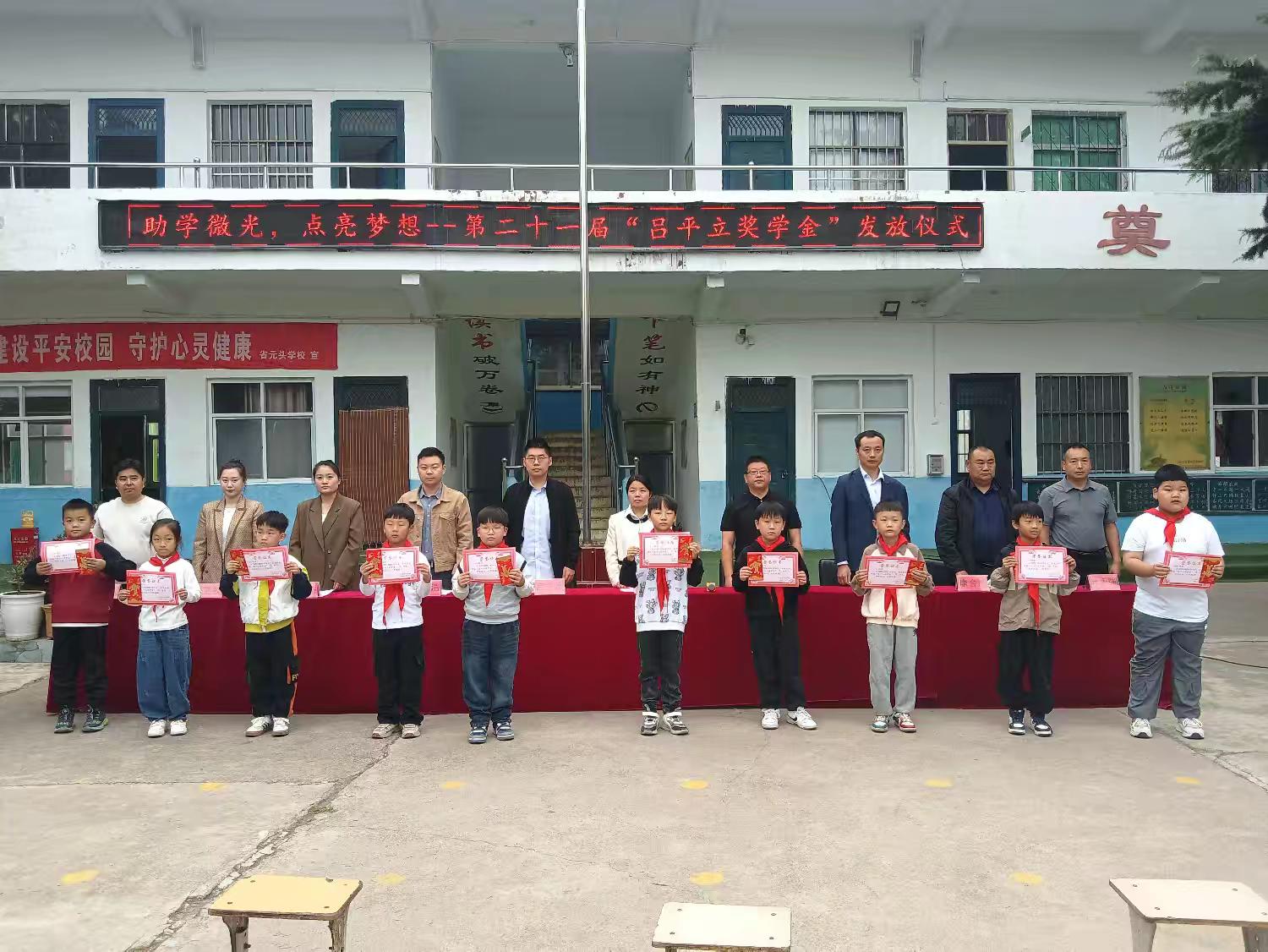 10月12日上午,阀门产业学院部分教师出席伊川县白元镇省元头学校第二十一届“吕平立奖学金”颁奖仪式。“吕平立奖学金”由阀门产业学院吕玉湖副院长自2012年以父亲名义出资设立,至今已有12个年头。