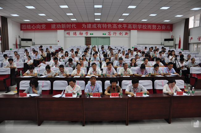 校党委书记陈灿致开幕词。陈书记指出,三届教代会召开以来,我校在“办人民满意的高等学校”的教育实践中又取得了新的突破,积极推进省级示范性高等职业院校建设,大力实施高等职业教育创新发展行动计划和高等职业院校管理水平提升行动计划,各项事业均得到了健康、快速发展。校工会在上级工会的指导下,在校党委的正确领导下,充分利用自身在联系群众方面的优势,发挥桥梁纽带作用,紧紧围绕学校中心工作,凝心聚力,服务大局,认真履行民主管理、民主监督的职责,积极为教职工做好事、办实事、解难事,做了大量富有成效的工作,为和谐校园建设作出了突出贡献。对于本次教职工代表大会和工会会员代表大会的召开,陈书记代表党委提出了三点希望:一是充分发扬民主,畅所欲言,认真履行代表职责、行使代表权利,圆满完成本次大会的各项任务;二是聚焦学校短板和改革发展中遇到的突出问题,解放思想,开动脑筋,探寻对策;三是着眼职业教育发展大局,为学校决策提供强有力的支持。陈书记要求全校必须紧跟教育部的指挥棒转,加快补齐短板,跟上教育现代化的步伐,抓住机遇,树立信心,振奋精神,励精图治,为实现创建特高学校的目标而努力奋斗。