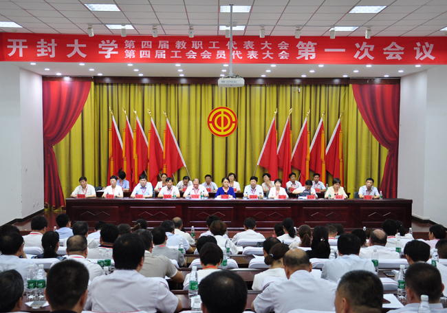7月5日,bat365在线官方网站第四届教职工代表大会、第四届工会会员代表大会一次会议在我校行政楼一楼会议厅召开。开封市总工会党委委员、副主席张红,开封市总工会教科文卫体工会主席李汴军,开封文化艺术职业学院党委委员、工会主席王森到会表示祝贺。大会正式代表、特邀代表、列席代表参加了会议,大会由校党委副书记储建新主持。