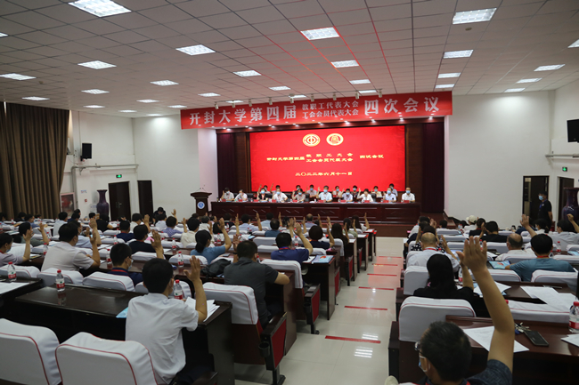 校党委副书记储建新讲话。他对工会、工会干部和教工代表提出四点希望:一是要拥护“两个确立”,始终把党的领导贯穿在工会工作中;二是要围绕发展大局,始终把主责主业落实在工会工作中;三是要服务教职员工,始终把以教职工为中心践行于工会工作中;四是提高能力作风,始终把自身建设体现在工会工作中。他要求,工会、工会干部和教工代表要更加紧密地团结在以习近平同志为核心的党中央周围,高举习近平新时代中国特色社会主义思想伟大旗帜,团结动员全校广大职工,实干担当、奋勇争先,为开封勇做新时代高质量发展开路先锋贡献工会力量,以优异成绩迎接党的二十大胜利召开!