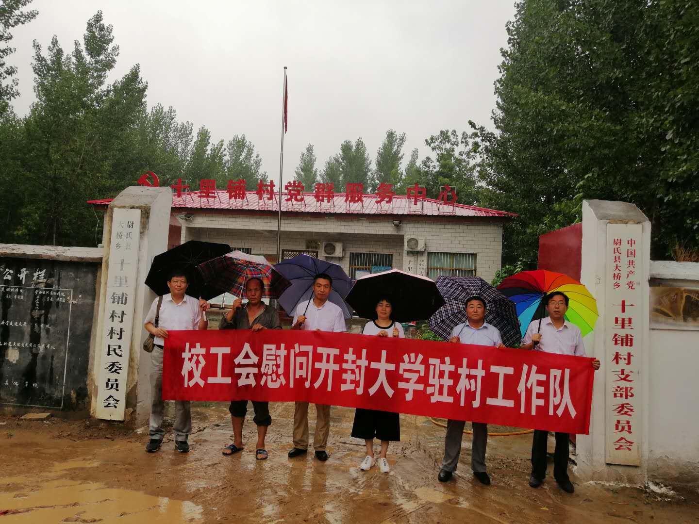 6月28日是开封市脱贫攻坚集中帮扶日,校工会主席成芳带队赴尉氏县大桥乡十里铺村冒雨慰问贫困户及bat365在线官方网站驻村工作队。