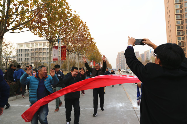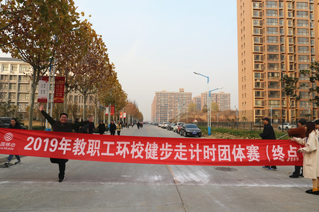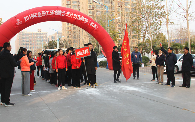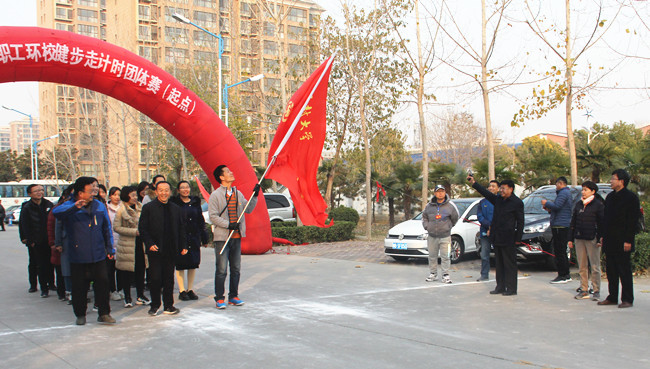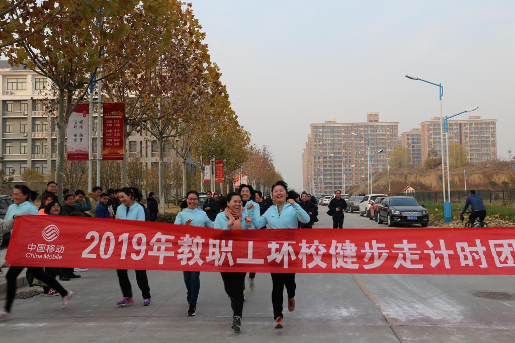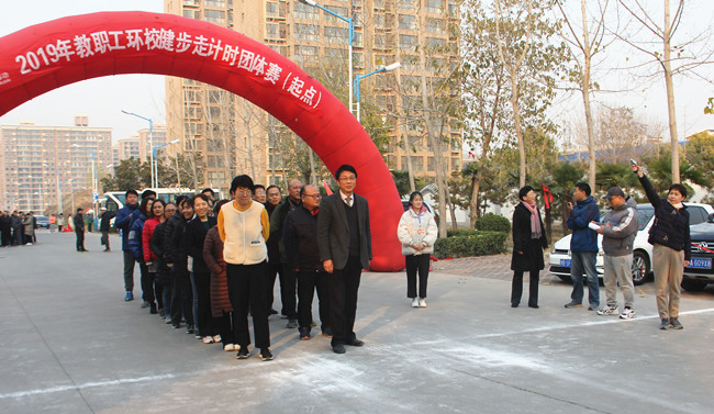 12月12日下午,我校举行了2019年教职工健步走计时团体赛。校领导万是明、成芳、马林强到场为各参赛队加油助威,并分别在赛道起点发令,副校长李治亲自参加了比赛。