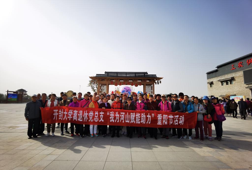 10月22日上午,正值中华民族的传统节日九九重阳节,恰逢我校建校40周年,校离退休党总支一行50余人赴开封市祥符区西姜寨乡爱思嘉•农业嘉年华,开展“我为河山赋能助力”专项活动。