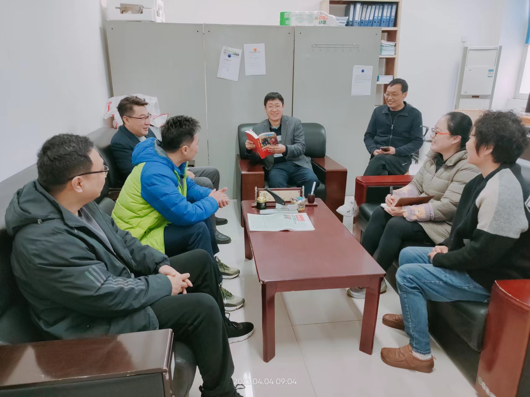 国资处全体人员为了深刻感悟人民领袖为人民、人民领袖人民爱,凝聚团结奋进力量。2023 年4月6日下午,在行政楼428房问,王玉杰处长带领全体国资处人员学习由全国妇联组织编写《习近平走进百姓家》一书,书中生动讲述了习近平总书记考察调研期间,走进百姓家,问生计冷暖、察民情民愿、讲惠民政策的感人故事。生动刻画了“人民领袖爱人民,人民领袖人民爱”的感人场景,深刻展现了大国与小家、领袖与百姓的血肉联系以及广大群众对以习近平同志为核心的党中央的真诚拥护、对习近平总书记的真挚爱戴。参加此次读书分享会,认真研读《习近平走进百姓家》,使国资处全体人员更加深刻地理解“两个确立”的决定性意义,坚定不移听党话、跟党走具有重要意义。感受到了习近平总书记一切为了人民的崇高境界和赤子情怀。