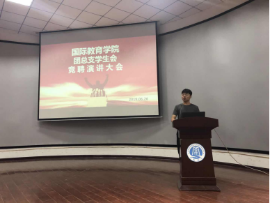 为进一步加强学生会干部队伍建设,努力建设规范型、学习型、服务型、创新型学生会组织6月26日下午,国际教育学院在5号楼一楼报告厅召开学生会干部竞聘大会。党总支副书记赵骅、团总支书记刘青、辅导员胡蓓晖及18级全体学生参加了本次大会。经过自愿报名和资格审查,共有37名学生参与了此次竞选。