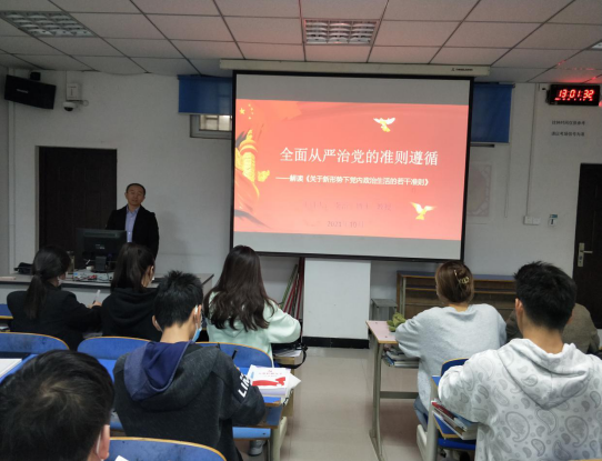 1013日,副校长李治应邀为国际教育学院分党校第64期入党积极分子培训班和第15期发展对象培训班学员在15号楼104教室上党课,为学员们解读了《关于新形势下党内政治生活的若干准则》。