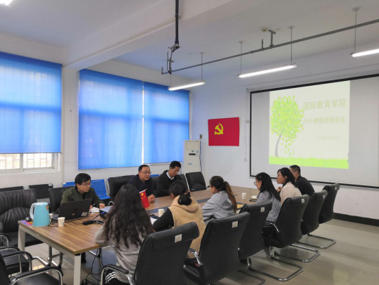 10月29日下午,国际教育学院在17号楼114会议室召开内外聘教师座谈会。院长袁长征、副院长蒋大山、教学秘书王赛以及本学期的内外聘教师参加了此次座谈会。