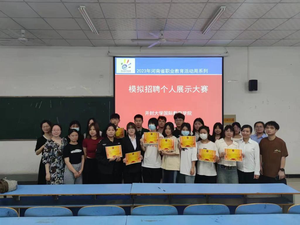 模拟招聘个人展示大赛是《人力资源管理》课程的实训活动,也是河南省职业教育活动周学院特色项目之一,大赛初赛为个人简历筛选、模拟面试环节,产生了18位选手晋级决赛。选手们从求职意向、个人优势、实践经历、岗位认知等方面进行了充分展示,通过激烈角逐,郝万存荣获一等奖,王勇钧、王萌阳、王昂鑫荣获二等奖;武尚、陈萌、邢向阳、张文静、李佳雪荣获三等奖。