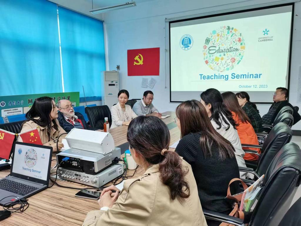 本次教学研讨会主要围绕堪培拉大学教学方法以及日常教学方法等展开热烈地讨论。在教研活动中,与会教师们积极发言、交流充分,深入探讨了如何设计课堂活动,激发学生学习兴趣,如何提升学生的英语水平以及专业案例分析方法等内容。