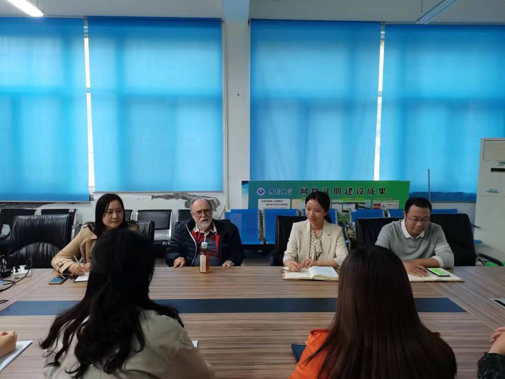 2023年10月12日下午,国际教育学院邀请了目前正在为2022级电子商务专业授课的澳大利亚堪培拉大学教Doug Davis与学院教师开展了教学研讨会。会议由副院长黄艺琴主持,学院全体任课教师参加。