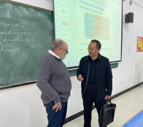 李校长听取了澳大利亚堪培拉大学外教DOUG老师的《管理学》课程,详细了解课堂教学内容、教学组织和教学效果等方面情况。课间,李校长外教DOUG、助教沈二波和学生们进行了深入交流,对外教认真备课的工作态度、耐心细致的讲解以及课堂教学效果给予肯定,认为DOUG老师的丰富经验一定能使学生们受益匪浅,并从进一步丰富教学内容,引进更加优质的国外教学资源,以及学生课堂互动和反馈等方面提出了改进建议。