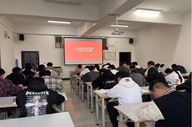 为进一步培养日语学习兴趣,提高日语书写能力。2024年10月24日下午,国际教育学院(外国语学院)于15号教学楼205教室成功举办了首届日语假名书法大赛。参加比赛的是2024级应用日语全体同学,日语教研室全体教师担任评委。比赛过程中,同学们认真书写,一笔一划都展现出对日语假名书写的专注与热情。
