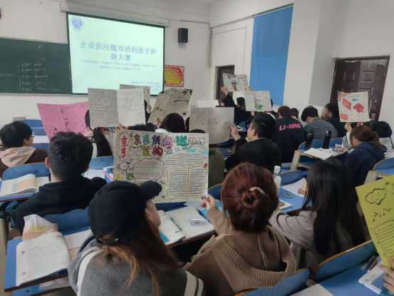 为进一步增强学生对著名企业供应链架构的了解,提高学生的双语表达能力和创新思维,培养学生的团队合作精神,丰富校园文化生活。2024年10月16日,国际教育学院(外国语学院)任课教师李俊霞组织23物流班于15号教学楼207教室成功举办了企业供应链架构双语手抄报大赛。经过评委们认真细致地审阅、讨论以及打分,最终从众多优秀的参赛作品中评选出了各个奖项,一等奖(1组)二等奖(三组)三等奖(6组)。