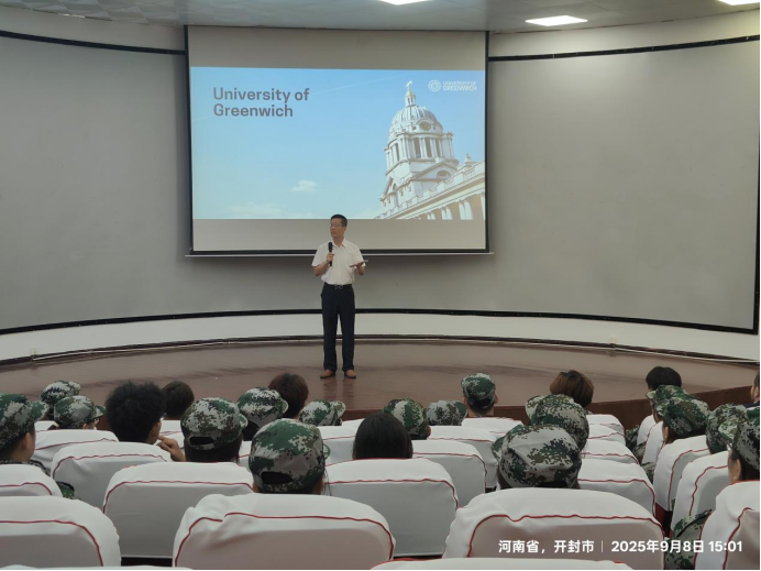 随后,英国格林威治大学代表团队带来专项宣讲与互动答疑。Conor Shanahan 先生从 “区位 - 学科 - 资源” 三维度详解校方优势。沈玥女士则聚焦学生关切,结合案例解读赴英留学的实际价值。在答疑环节,中英双方针对新生提出的 “留学申请时间节点”“雅思分层备考方案”“校内公寓与合作民宿选择”“PSW 签证申请流程及留英物流岗位分布” 等问题逐一拆解,Conor Shanahan 先生还特别分享了格林威治大学针对该专业学生的 “语言达标绿色通道”,为新生提供可落地的规划参考。