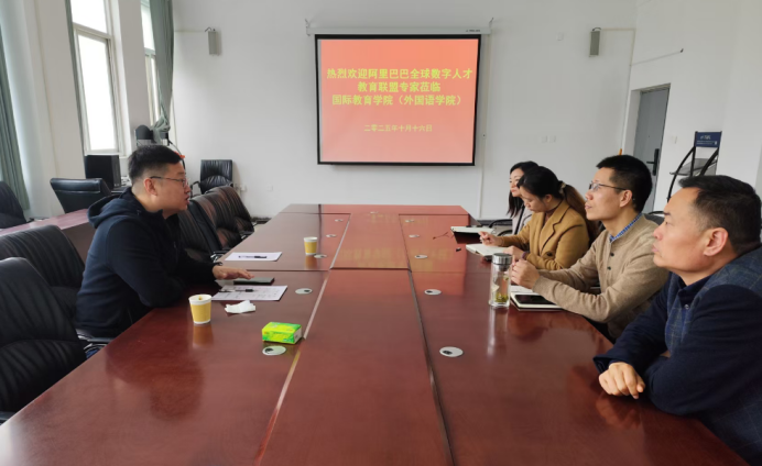 2025年10月16日上午,阿里巴巴全球数字人才教育联盟部长王振彬一行与bat365在线官方网站国际教育学院(外国语学院)院长蒋大山、副书记秦新峰、副院长黄艺琴及国际交流合作处副处长郭俊霞,在学院会议室围绕高职院校电子商务专业发展与人才培养展开深度交流。