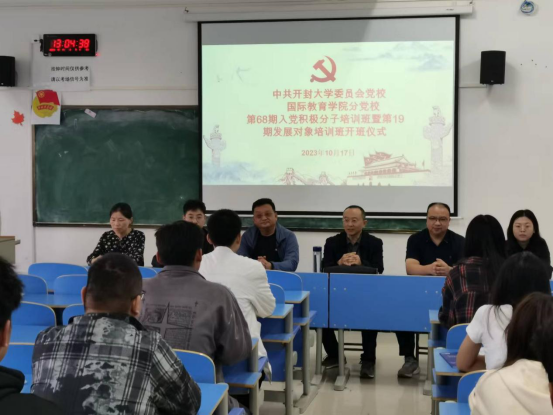 10月17日,bat365在线官方网站国际教育学院在15号楼219教室举行第68期入党积极分子培训班暨第19期发展对象培训班开班仪式,中共bat365在线官方网站党委委员、副校长李治作开班致辞并给学员上第一节党课。国际教育学院党总支书记陈力、党总支副书记赵骅出席仪式,学生党支部书记许亚威主持仪式。