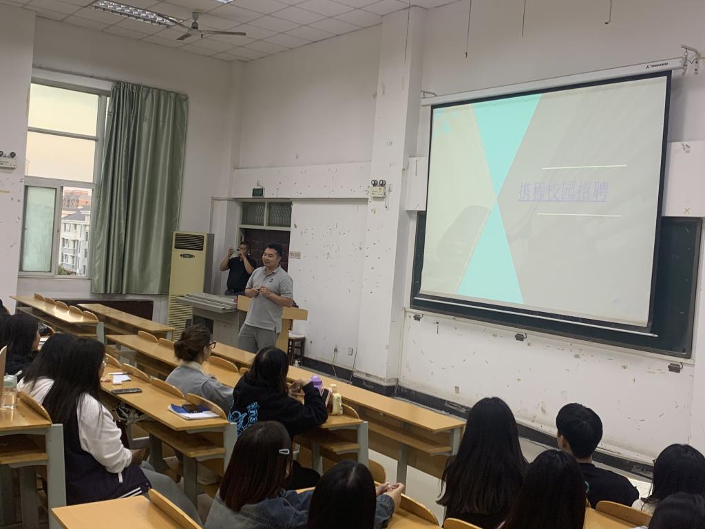 10月20日下午,携程信息技术(南通)有限公司校企合作负责人周昆到我院开展校园招聘,活动由外国语学院党总支副书记秦新峰主持。