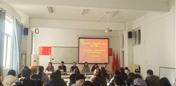为深入学习贯彻党的二十届四中全会精神,紧扣中国式现代化对教育、文化、国际交流提出的新要求,12月4日下午2点30分,我院教工各支部在5 号楼一楼会议室开展了12月份“5+N” 主题党日活动。活动由顾军同志主持,...