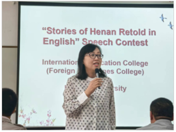On the afternoon of September 26,theInternational Education (Foreign Languages) College successfully held the "Stories of Henan Retold in English" speech contest in the 6th-floor lecture hall of Building 5. Attending the event were Cheng Xin, Party Secretary oftheInternational Education (Foreign Languages) College, Jiang Dashan, Dean, Qin Xinfeng, Deputy Party Secretary, and Huang Yiqin, Vice Dean. Foreign teacher Roopa and several faculty members served as judgesfor the competition.