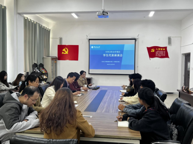 On the afternoon of October 24th, the International Education College (Foreign Languages College) held a student representative symposium. Cheng Xin, the Secretary of Party Committee of the college, Jiang Dashan, the Dean, Qin Xinfeng, the Deputy Secretary of the Party Committee, Huang Yiqin, the Vice Dean, Ma Yuhong, the Supervisor of the college, directors of each teaching and research section, teaching secretaries, and student representatives from each class participated in the meeting. The student representative symposium for the Sino-foreign cooperative education program was presided over by Kang Fengzhuo, the teaching secretary, and the symposium for student representatives of foreign language majors was presided over by Li Yan, the director of the teaching and research section.