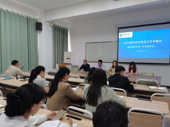 To thoroughly implement the Ministry of Education's employment policies for college graduates, the International Education(Foreign Languages)Collegeconvened a special employment conference on the afternoon of May 9 in Room 5#107. Attending the meeting were Party Branch Secretary Cheng Xin and Dean Jiang Dashan, along with 30 participants including department heads, graduating class counselors, and internship instructors.