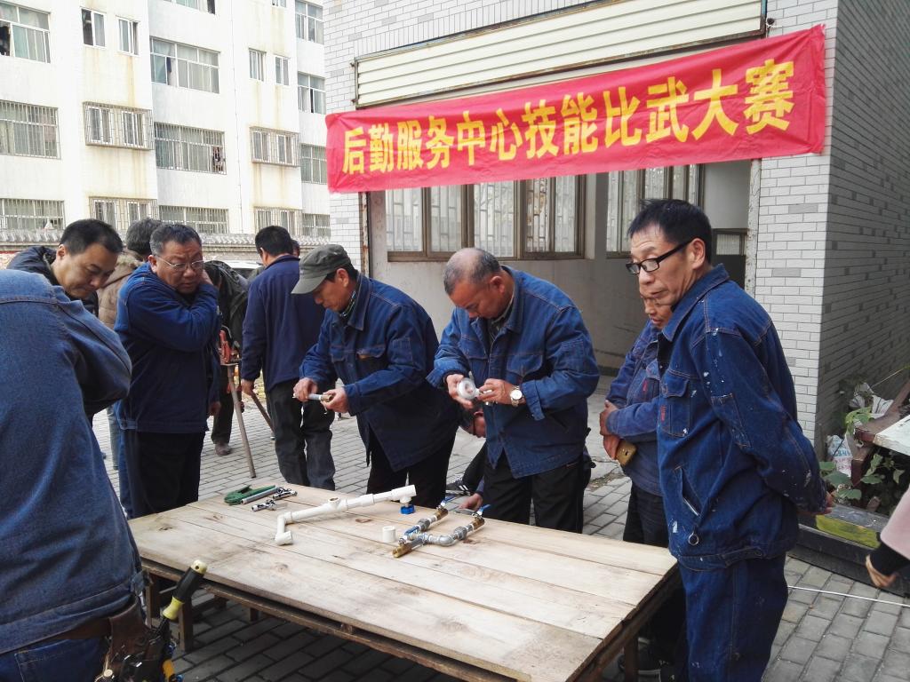 为进一步提高后勤服务中心维修科各岗位工种人员的技术业务素质,激发广大职工“争先创优 干事创业”的积极性,11月23日下午,后勤服务中心组织水电维修人员在17#教学楼西侧开展了岗位技能比武大赛,后勤服务中心主任、书记等领导到现场观摩了大赛。